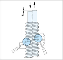 Радиальный зазор (b) получается только для BA 1 из зазора между направляющим кольцом и наружным диаметром винта. Он составляет прим. 0.2 мм и приводит, в зависимости от длины хода, к линейно рассчитываемому отклонению (b). Уменьшение зазора (b) возможно с помощью второго направляющего кольца.